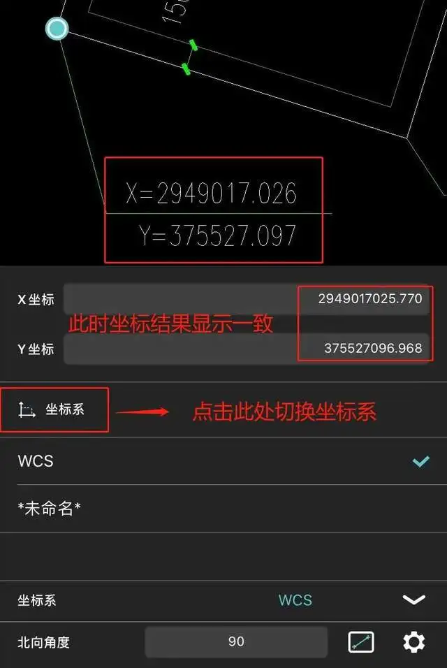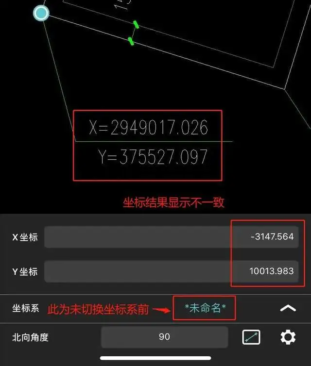 1、点击测量坐标后,发现测量的坐标结果与图纸上显示不一致;
