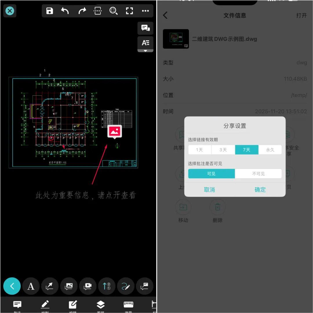 4、结合其他功能使用:可搭配CAD看图王的批注、测量等功能,全面提升施工现场管理效率。